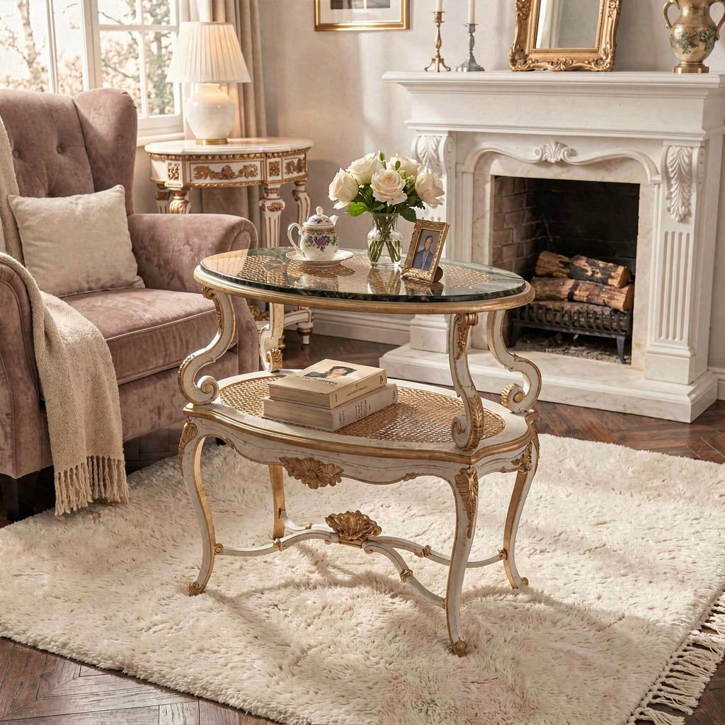 کافی تیبل ۲ طبقه ی بیضی حصیری مسیحا مدل راشل کد 00307002