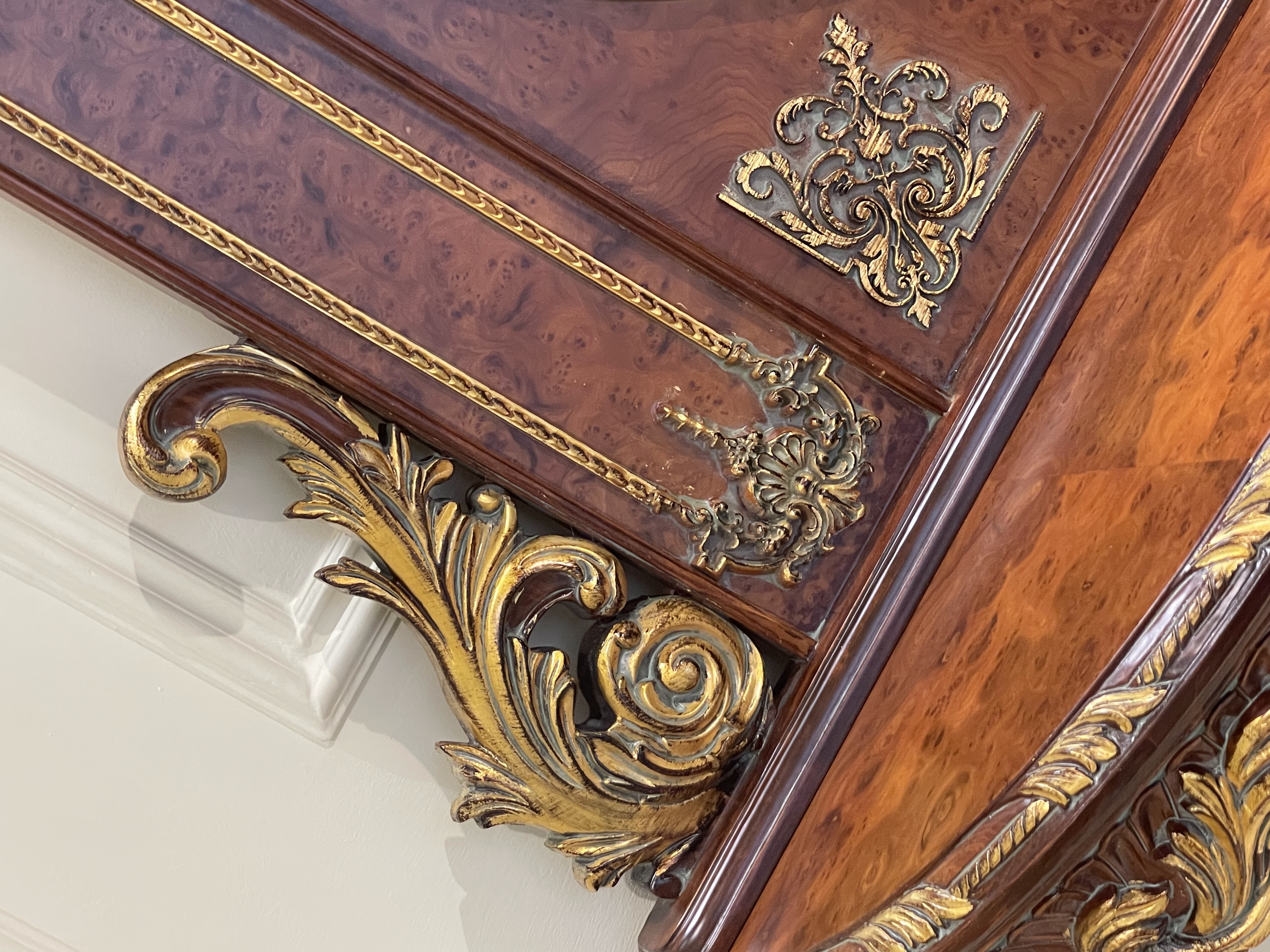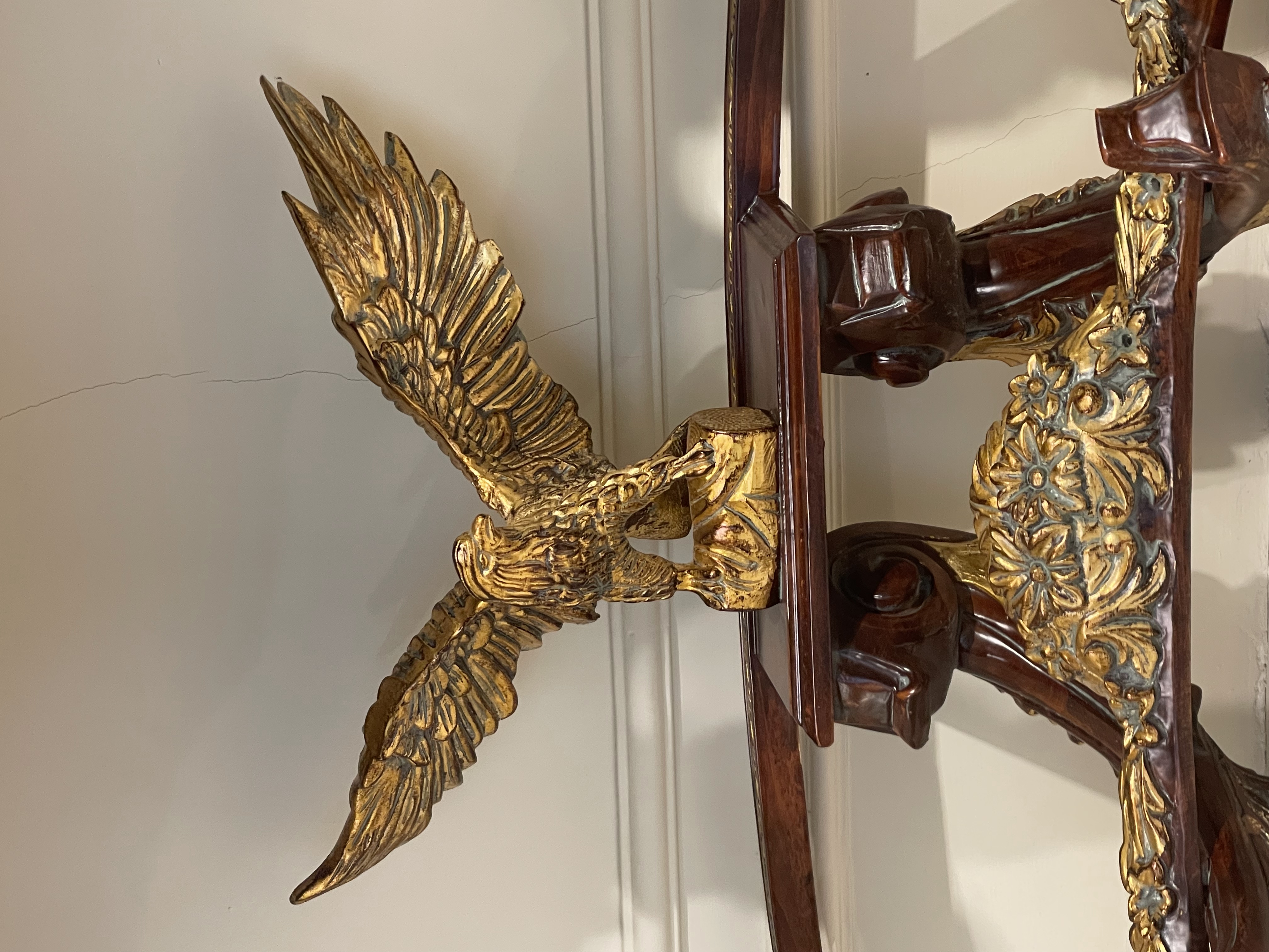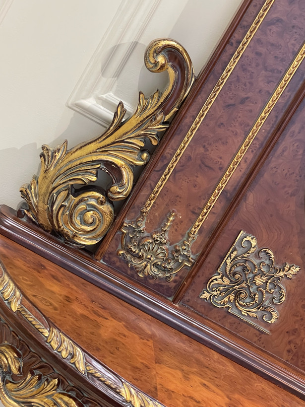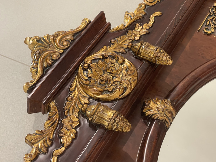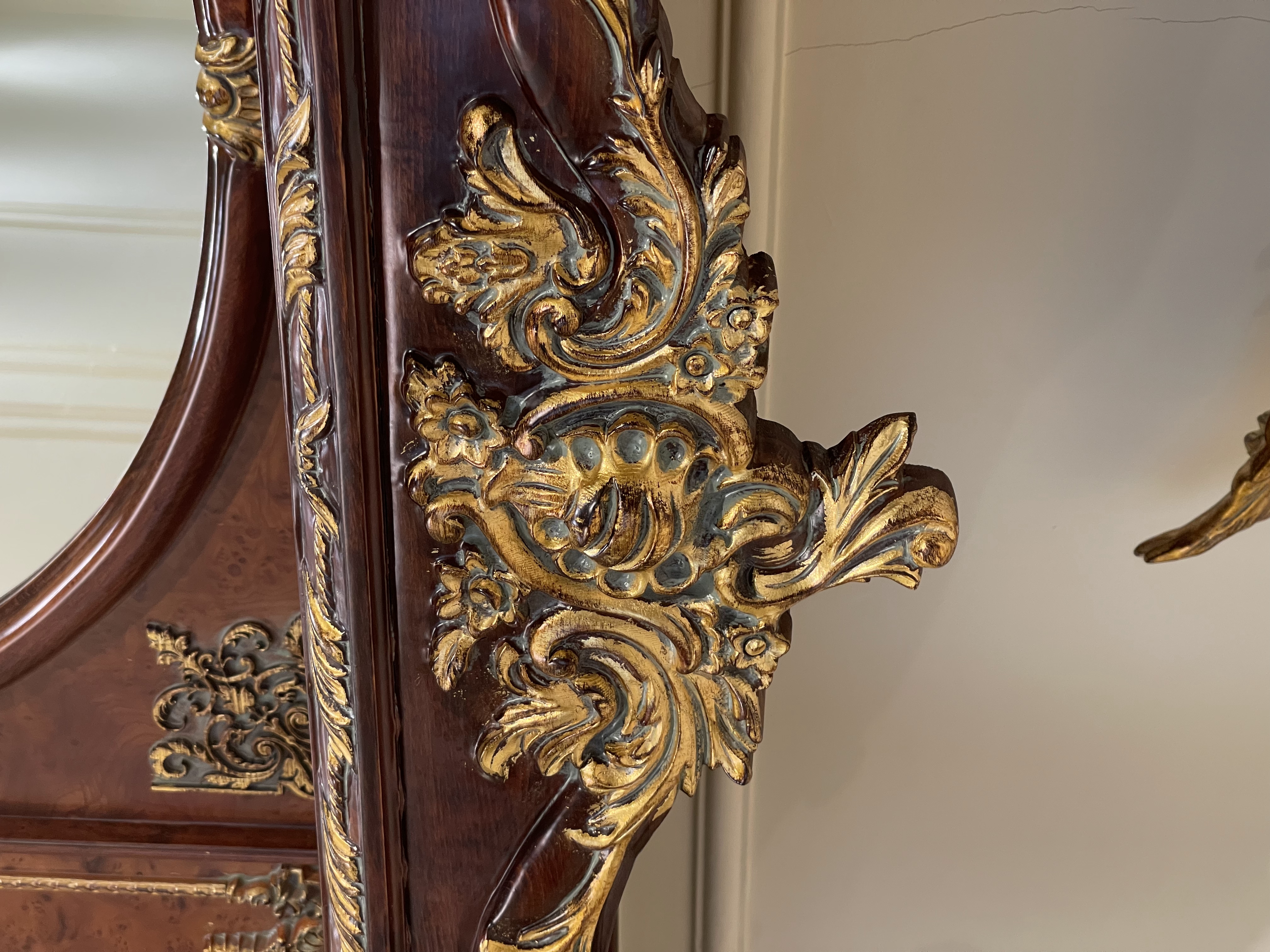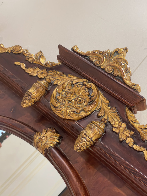 زیباترین آینه وکنسول ، ژیکس هست ، نجاری مهندسی و استفاده هوشمندانه از منبت در قسمتهایی از کار و همچنین رنگ بسیار زیبایی که هنرمندانه با ورق طلا تلفیق شده به همراه استفاده بهینه از تاچکاری و سایه کاری و پتینه بسیار زیبایی که بکار رفته
